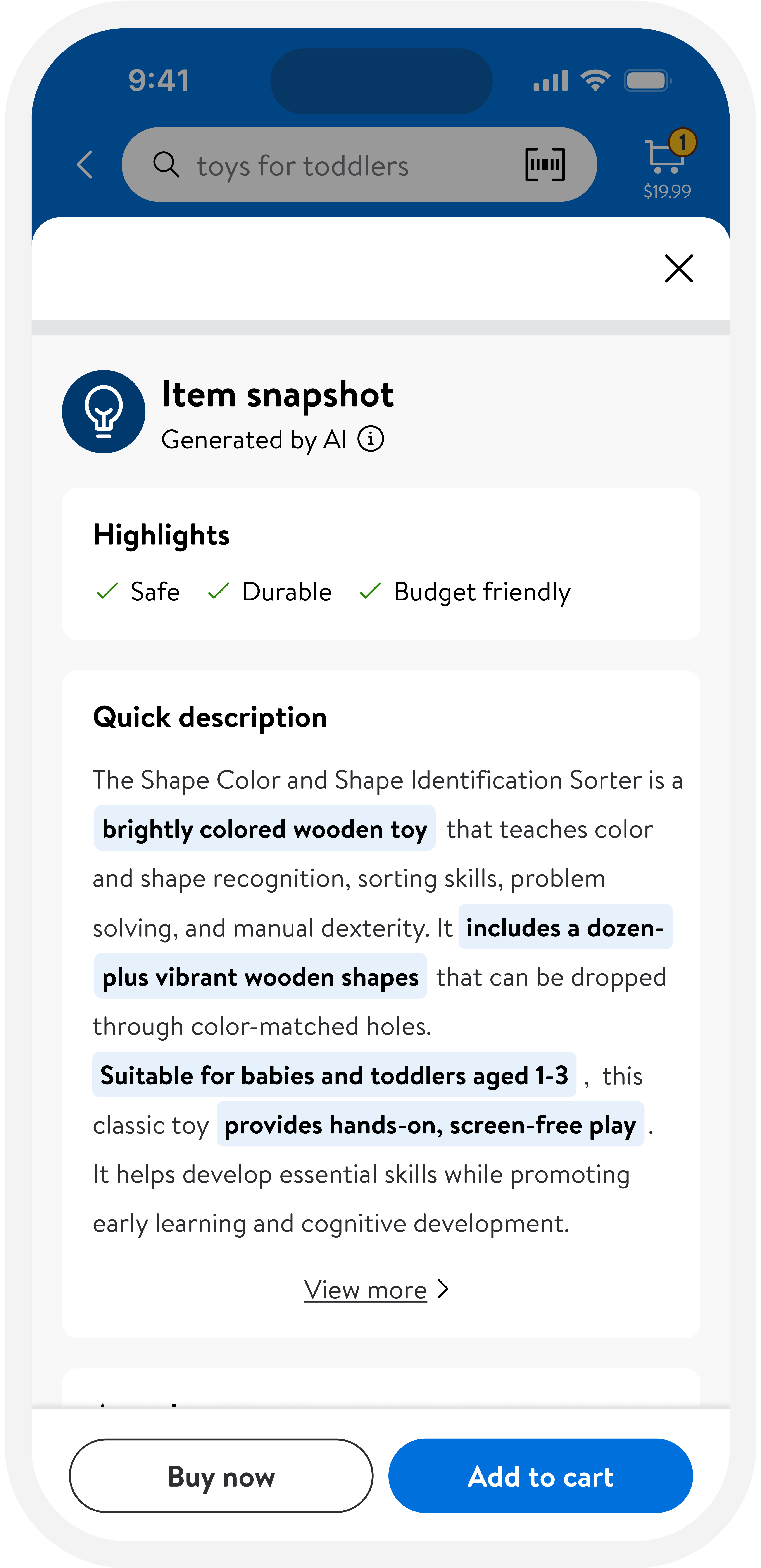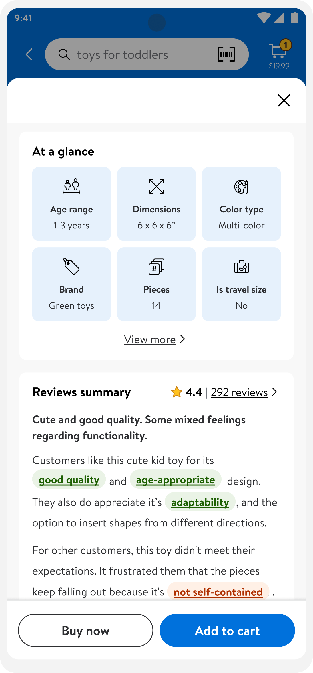 Enhancing user confidence with concise item and review summaries that reduce cognitive load and support faster, informed evaluation.